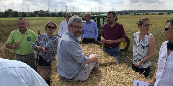 Auf dem Betrieb von Peter Kaim informierte sich Brandenburgs Landwirtschafts- und Umweltminister Axel Vogel über erste Erkenntnisse aus dem Projekt und besichtigte die Umsetzung der Naturschutzmaßnahmen.
