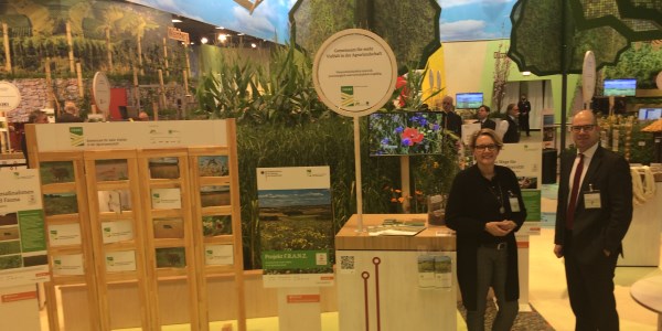 Sibylle Duncker, UMO, und Steffen Pingen, DBV, präsentieren das F.R.A.N.Z.-Projekt in der Sonderschauhalle des Bundesministeriums für Ernährung und Landwirtschaft