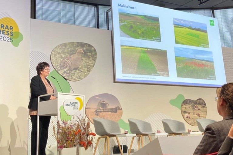 Sabine Riewenherm, Präsidentin des Bundesamtes für Naturschutz, hob in ihrem Eingangsstatement das F.R.A.N.Z.-Projekt als fortschrittlichen, innovativen Ansatz hervor, um mehr Biodiversität in die genutzte Fläche zu bringen und stellte bisherige Ergebnisse des Projektes vor. Zum Beispiel führt das „Feldlerchenfenster“ zu einem 15-prozentigen Anstieg der Feldlerchendichte, während nur 0,4 Prozent der Feldfläche für die Anlage nötig sind. Sie betonte weiterhin: „Eine enge und vertrauensvolle Zusammenarbeit aller beteiligten Akteure aus Landwirtschaft und Naturschutz ist entscheidend, um eine schlanke und gleichzeitig effektive Agrarumweltförderung zu ermöglichen. Nur so können wir unsere Biodiversitäts- und Nachhaltigkeitsziele erreichen.“