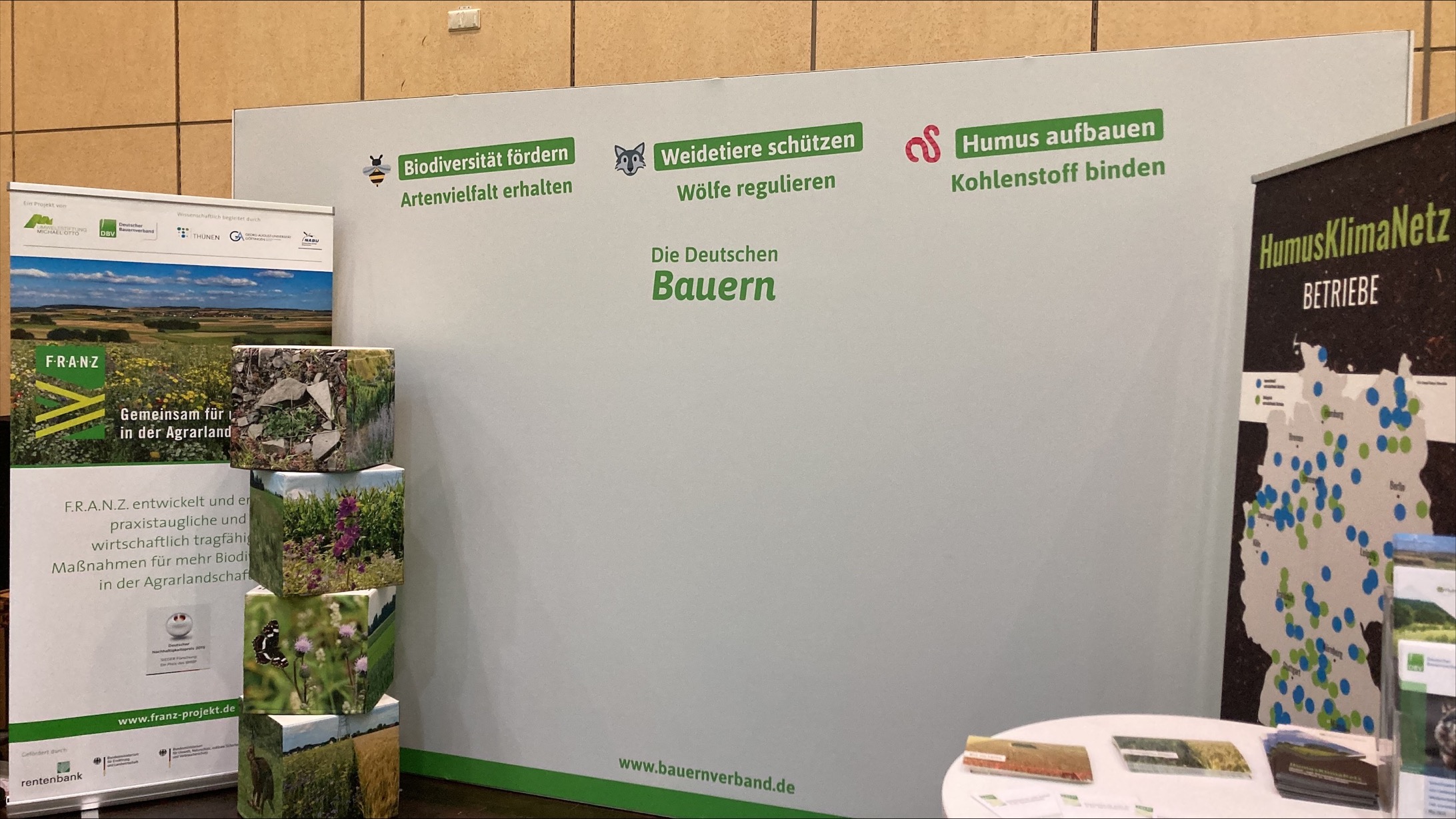 Im Rahmen eines gemeinsamen Projektestands war auch das F.R.A.N.Z.-Projekt vor Ort vertreten und präsentierte sich den Delegierten, Gästen und weiteren Teilnehmenden. Neben diversen Infomaterialien, wie die allgemeinen Flyer, die spezifischen Betriebsflyer und Postkarten wurde eine Fotobox mit Rückwand (Titelfoto) und entsprechenden Dekomaterialien (Foto 2) genutzt, um auf das Projekt aufmerksam zu machen und so in den fachlichen Austausch zu den F.R.A.N.Z.-Maßnahmen und der allgemeinen Projektausgestaltung zu treten.