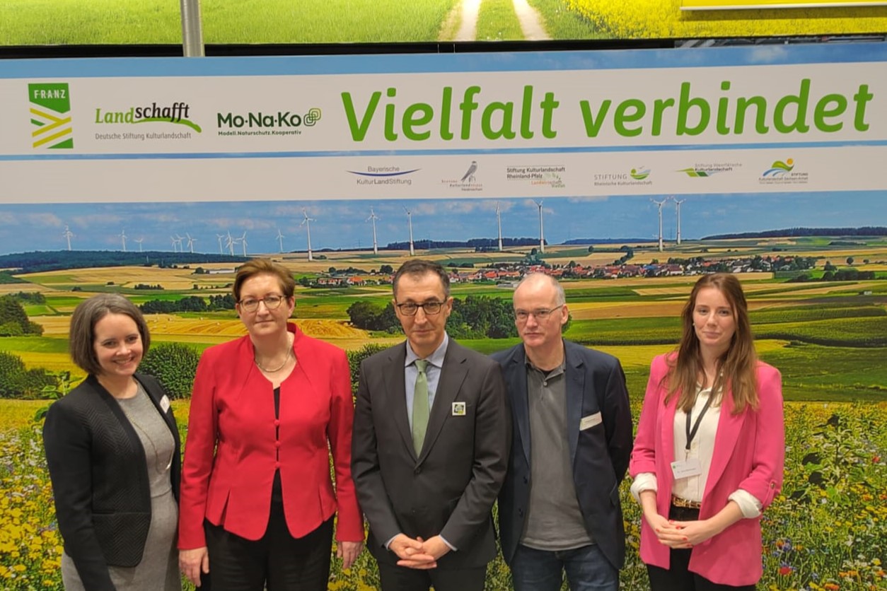 Ein zentraler Aspekt der Grünen Woche waren die Gespräche mit politischen Entscheidungsträger*innen über die Ergebnisse aus den letzten 8 Jahren und mögliche flächendeckende Übertragungswege der F.R.A.N.Z.-Maßnahmen. Besonders gefreut haben wir uns über den Besuch unseres Schirmherrn und Schirmfrau: Bundesminister für Ernährung und Landwirtschaft und Bildung und Forschung, Cem Özdemir und Bundesministerin für Umwelt, Naturschutz und Reaktorsicherheit, Steffi Lemke.