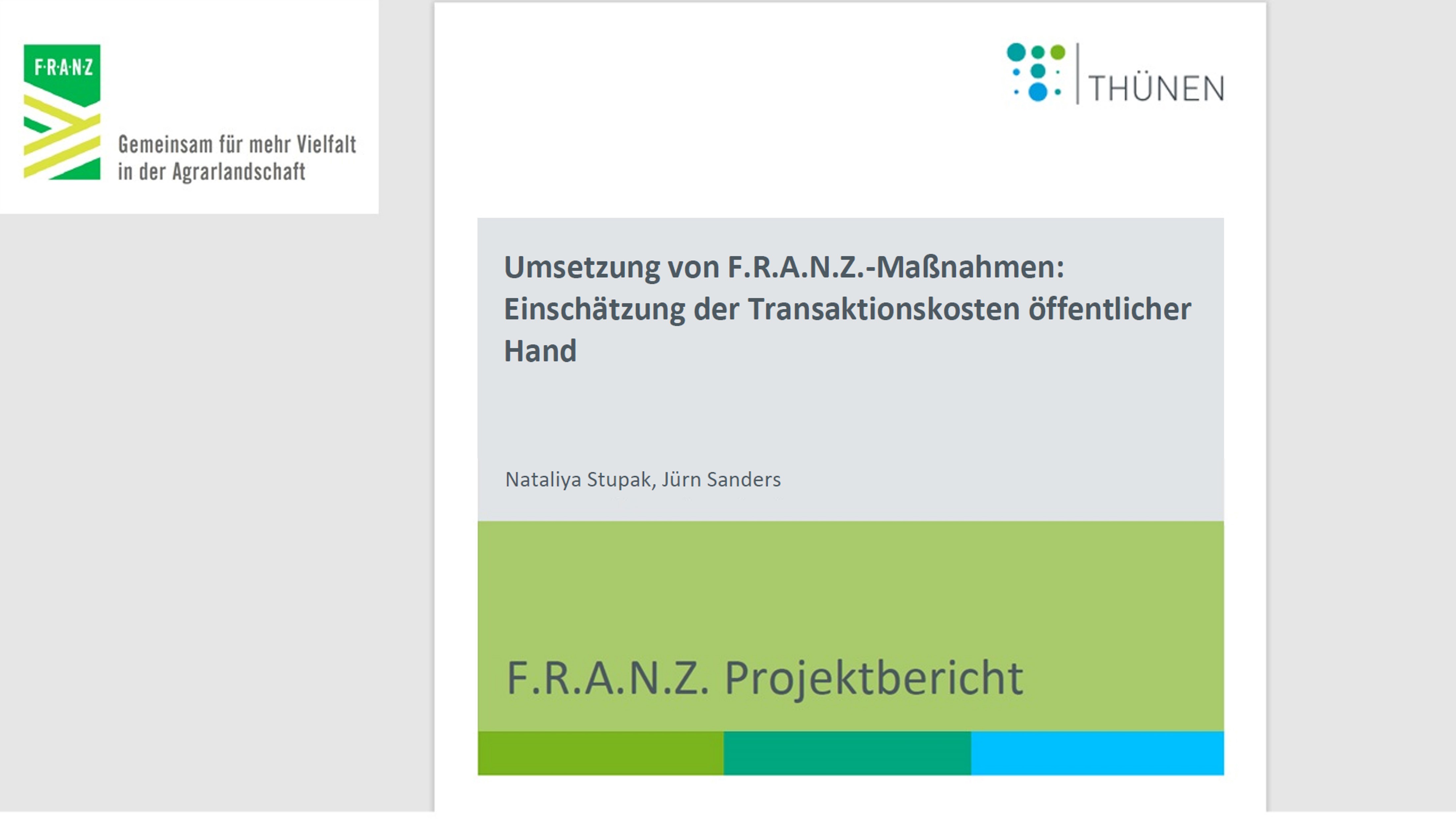 Unter dem Titel „Umsetzung von F.R.A.N.Z.-Maßnahmen: Einschätzung der Transaktionskoten öffentlicher Hand“ veröffentlichen die Autor*innen Dr. Nataliya Stupak und Dr. Jürn Sanders vom Thünen-Institut für Betriebswirtschaft Ergebnisse aus der sozio-ökonomischen Forschung.
